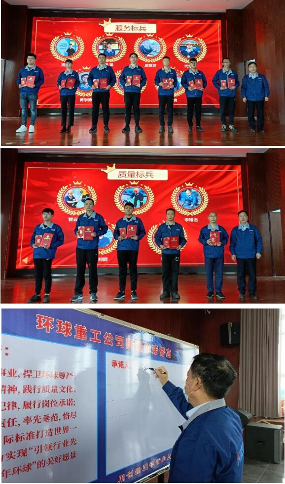大會宣讀了《環球重工公司關于表彰“服務標兵”、“質量標兵”的決定》。環球重工總經理劉增喜為獲得表彰的人員頒發榮譽證書和 獎金紅包。